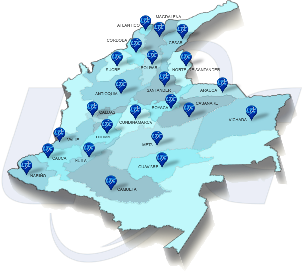 Pensando en nuestros clientes y las facilidades de acceso, contamos con una cobertura en 25 departamentos del país. Para más información sobre la localización de nuestros distribuidores, comuníquese al PBX (57-1) 549 3949 en Bogotá - Colombia.