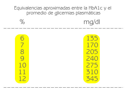 Se conoce una correspondencia aproximada entre los valores de A1c y la glucemia que tendría ese paciente como se muestra en la siguiente tabla: