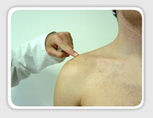 Es importante evaluar la articulación acromioclavicular de forma bilateral y el cuello También es importante con el brazo en neutro a ligera rotación externa palpar la corredera de la porción larga del bíceps y saber si en esta zona hay dolor.